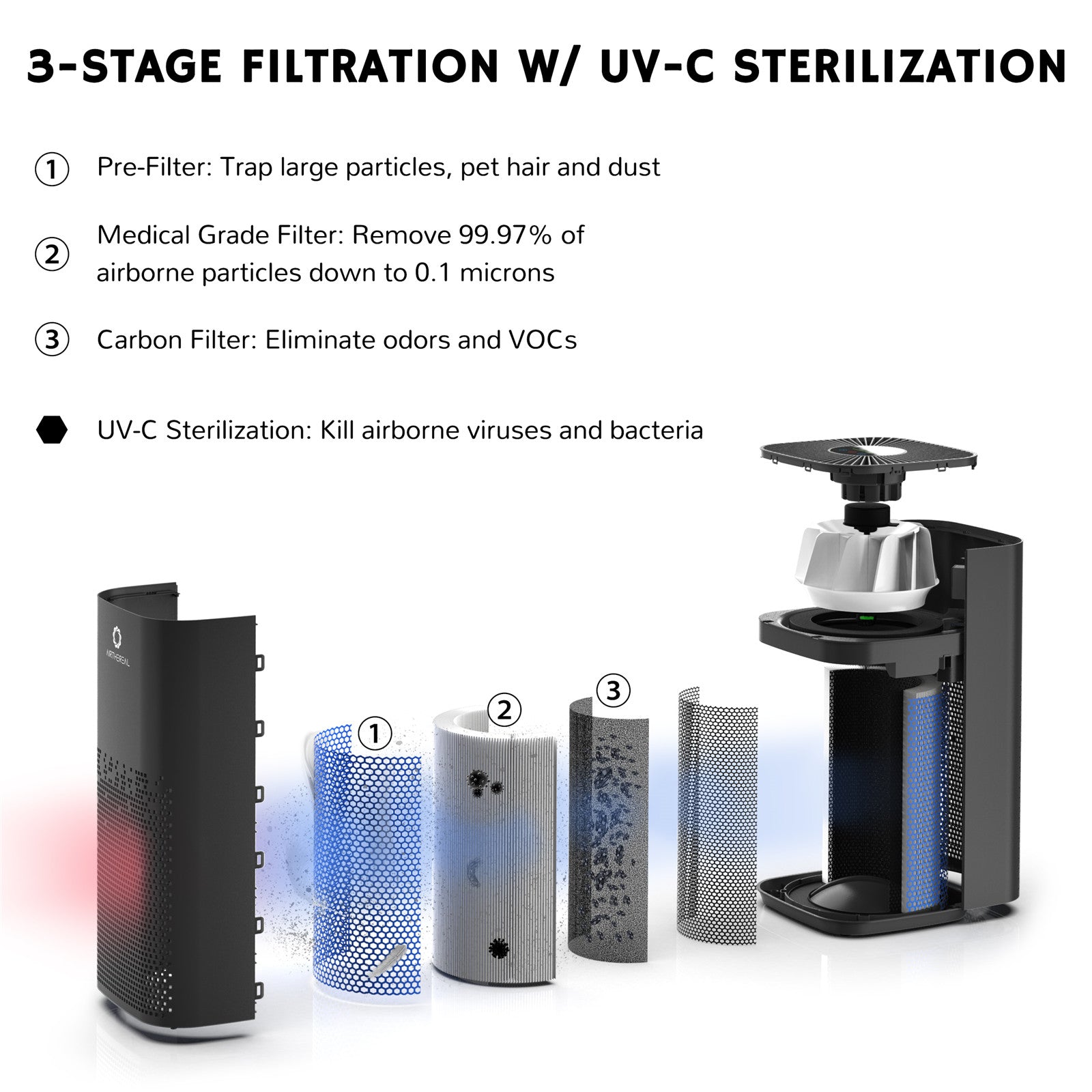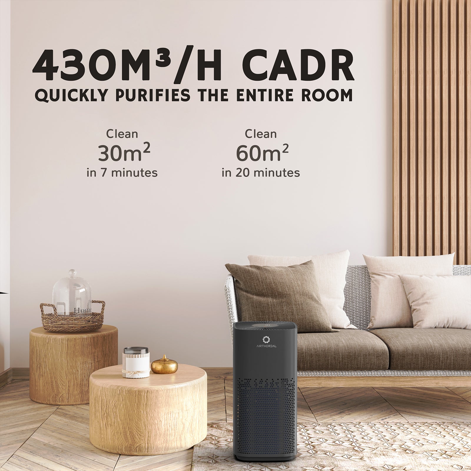 The AGH430 is powerful enough to completely clean and recirculate air every 20 minutes in a 60m2 space.