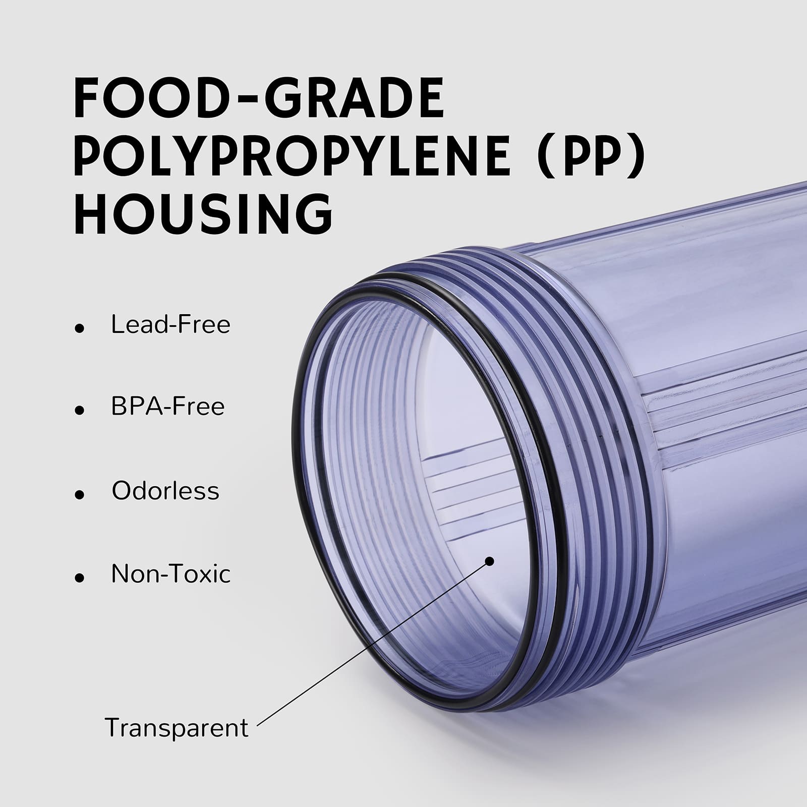 Crafted with premium quality to meet NSF standards, reinforced polypropylene housing ensures strength and chemical resistance to provide you with safe and healthy filtered water.