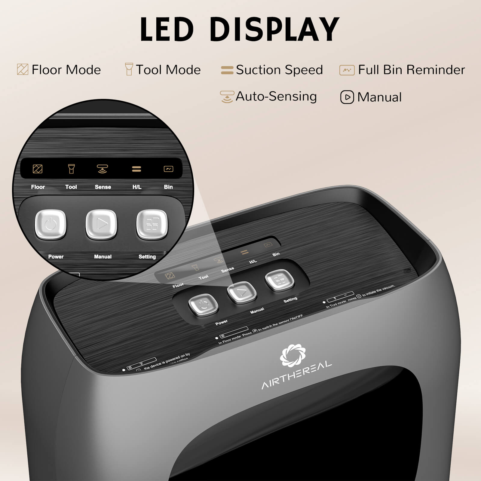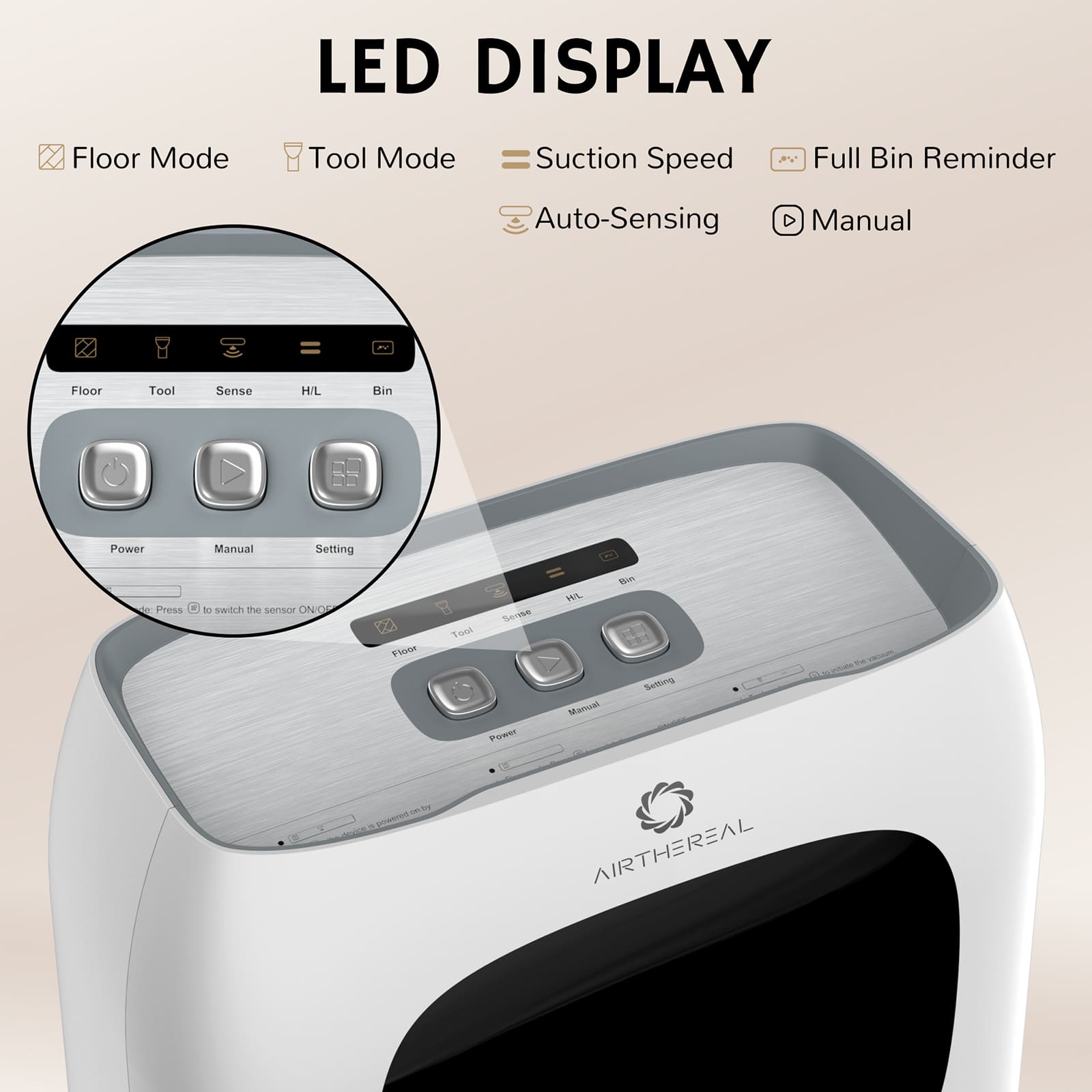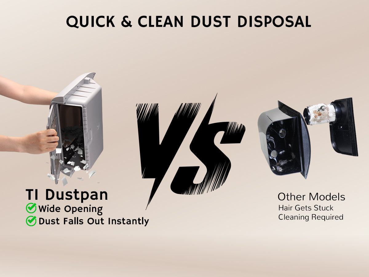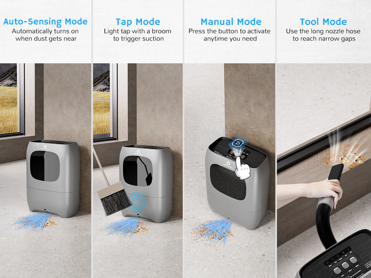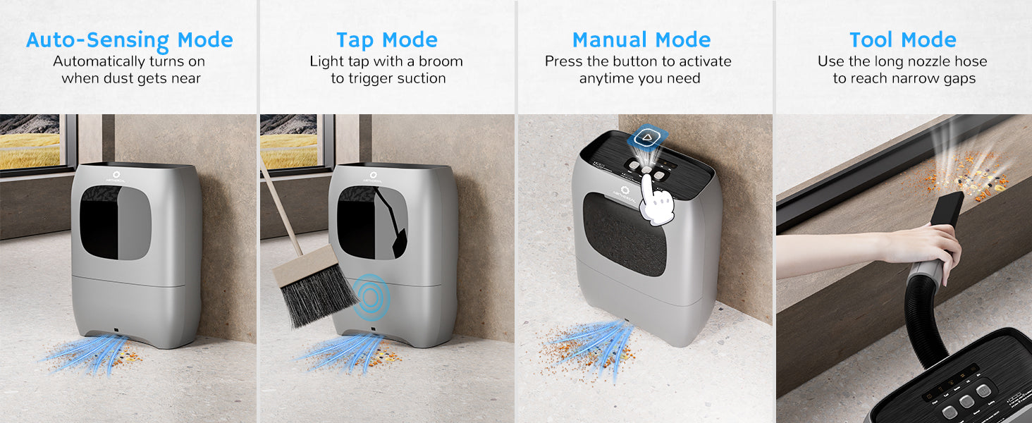 The Touchless Vacuum Automatic Dustpan works via infrared detection or when the broom touches the sensing area.