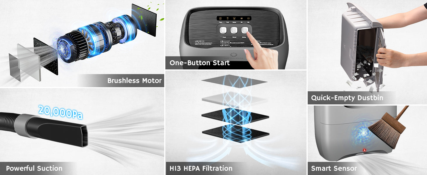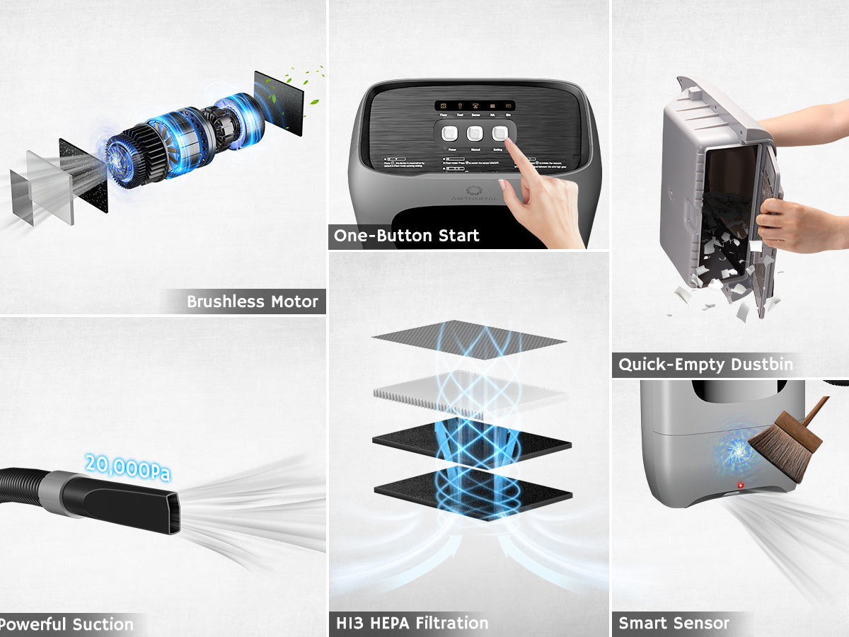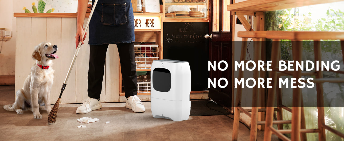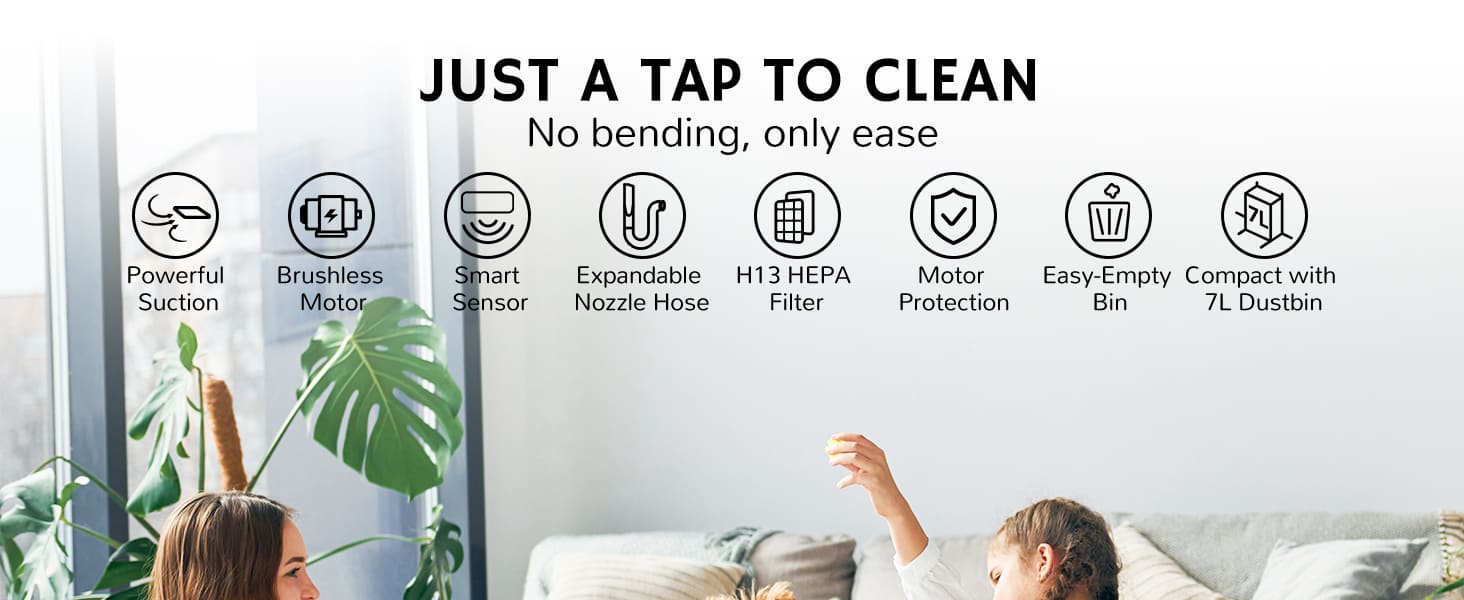 The Touchless Vacuum Automatic Dustpan works via infrared detection or when the broom touches the sensing area.