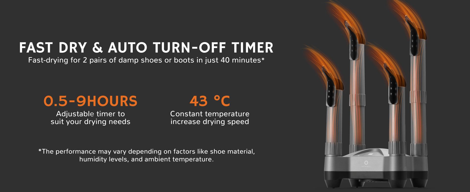 • Fast & Safe Drying: Efficient drying with built-in overheat protection—your shoes dry quickly without damage.