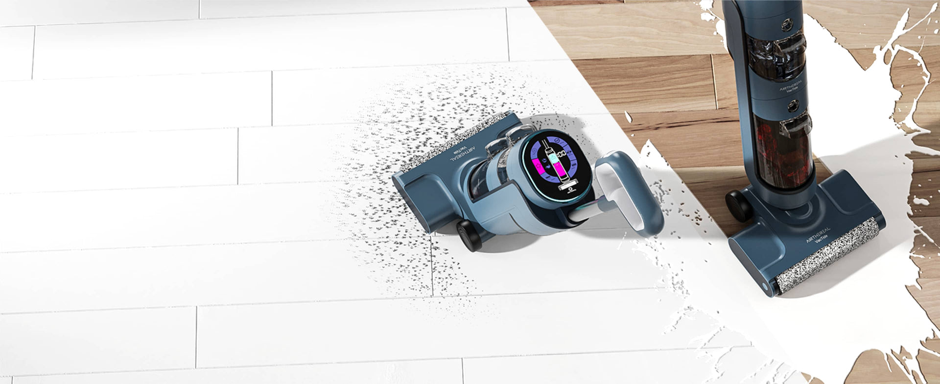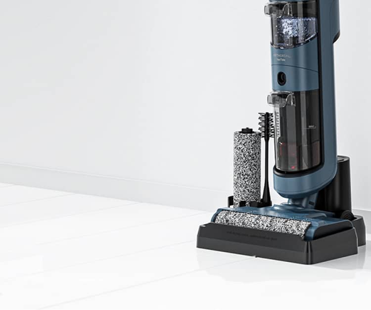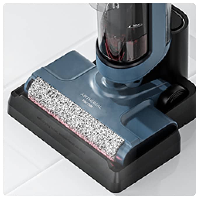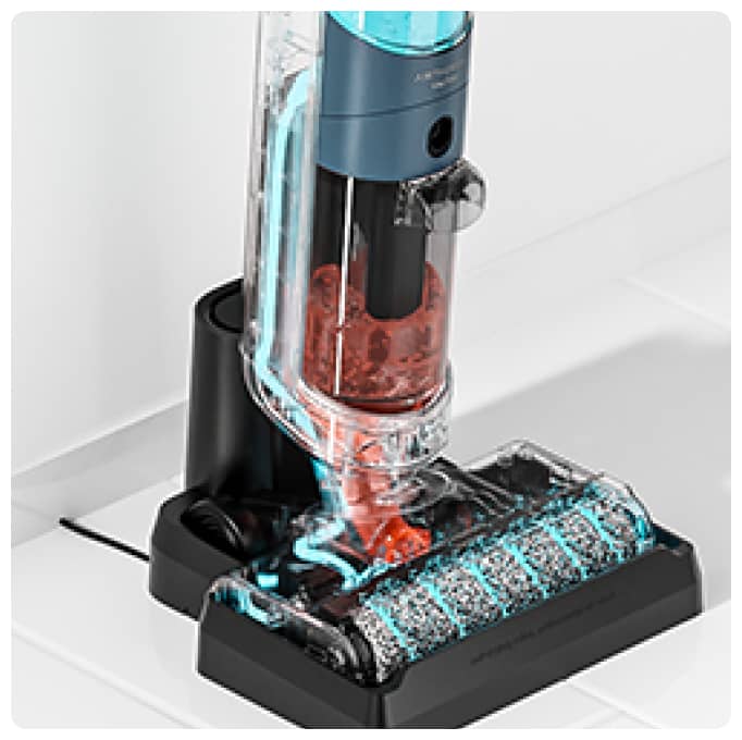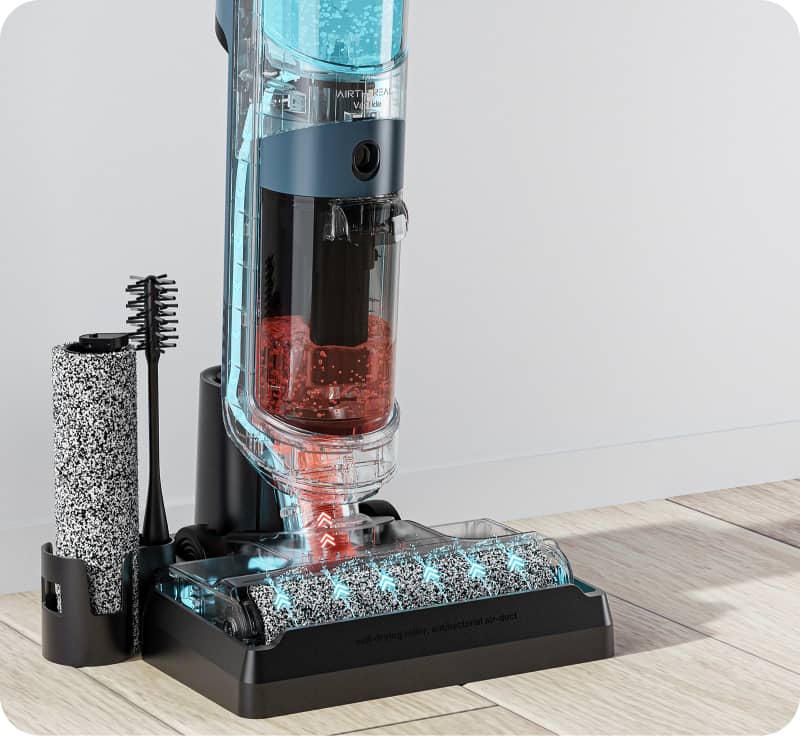 No manual washing required for the roller brush. It utilizes spin cleaning and